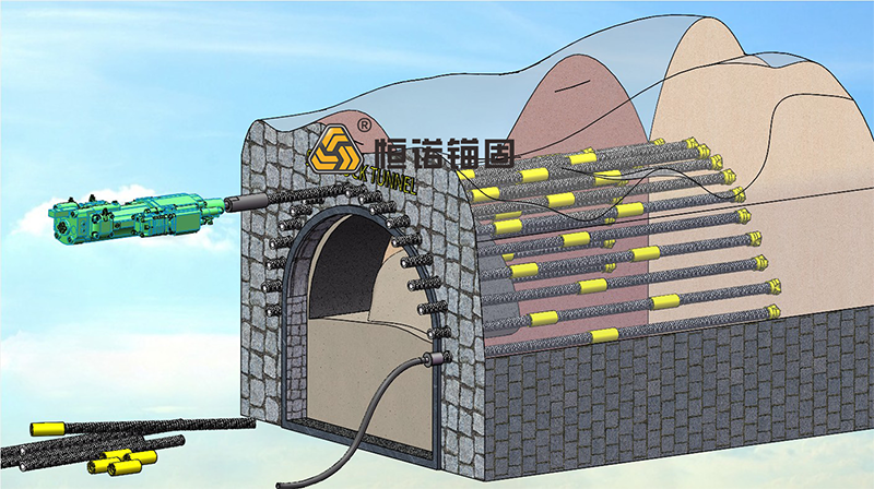 自鉆式錨桿在隧道及地下工程中主要用于隧道口管棚支護、超前管棚、超前支護、鎖腳支護、頂板支護、系統錨桿等項目。特別是在隧道掘進中,遇到破碎圍巖,常規管棚難以施工,自進式錨桿可作為管棚使用,施工效率高,綜合成本低。