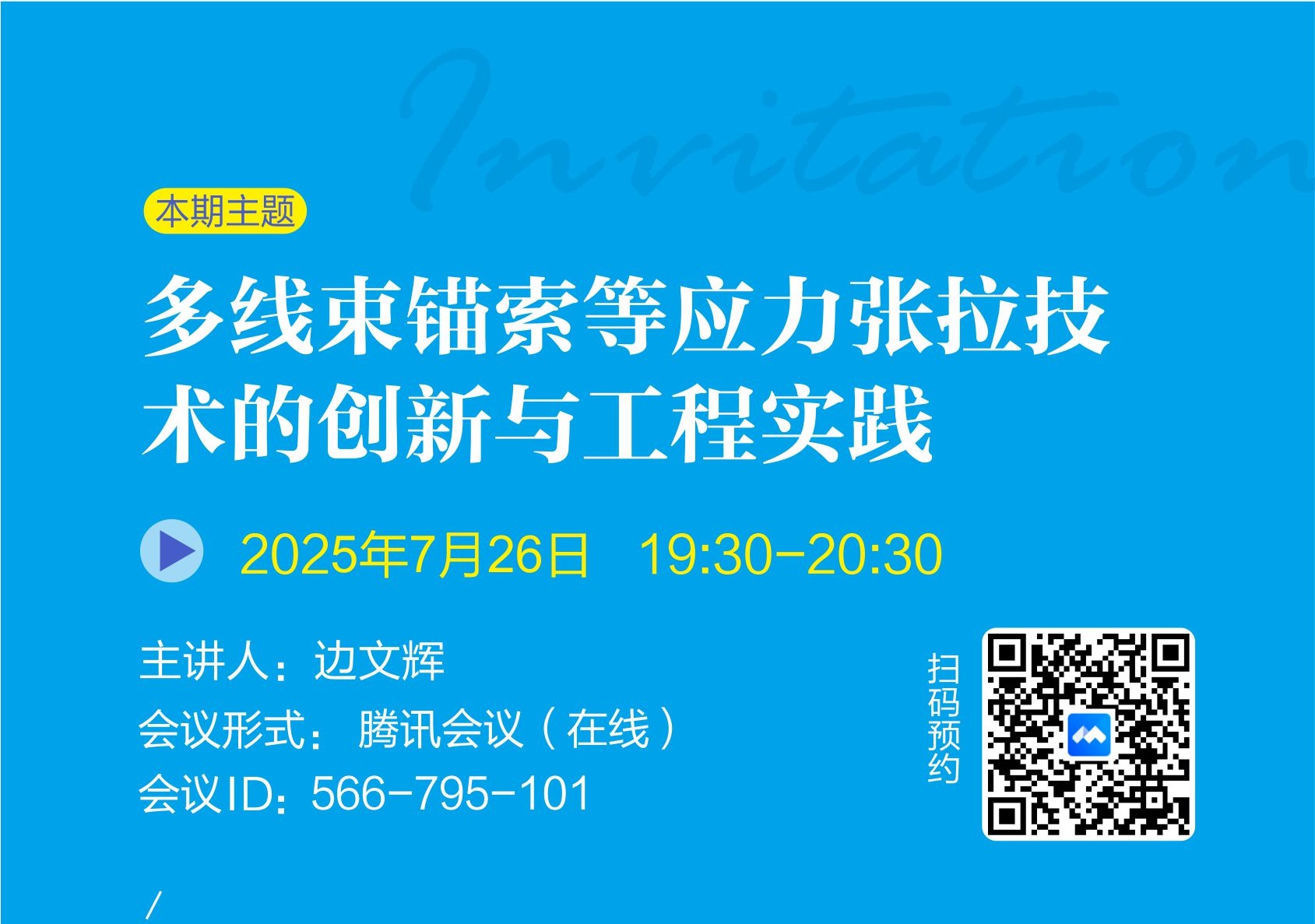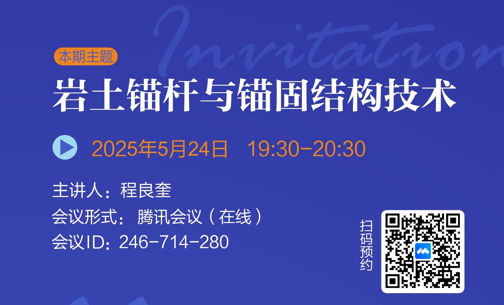 發布日期:2024-11-28 09:53巖土錨固學苑將于2024年9月28日(周六)19:30-20:30舉辦第21期,本期主題:交通基礎設施數智防災減災典型案例剖析,歡迎廣大巖土錨固領域愛好者參與交流。 會議形式: 騰訊會議(在線) 會議ID: 897-470-483 本期會議二維碼(騰訊...