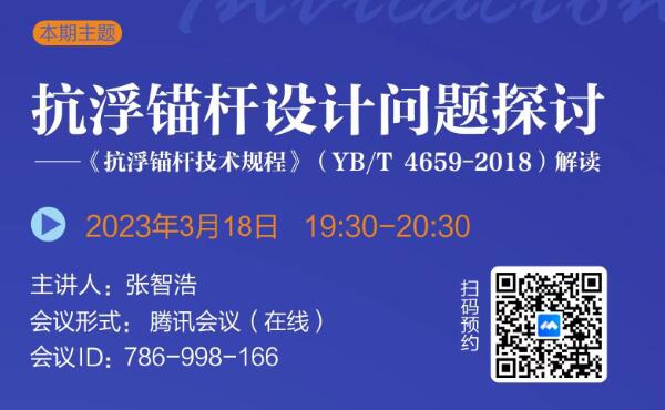 發(fā)布日期:2023-04-23 11:40報告從結(jié)構(gòu)設(shè)計的角度結(jié)合《抗浮錨桿技術(shù)規(guī)程》相關(guān)規(guī)定對抗浮錨桿設(shè)計中一些常見問題和疑問如:設(shè)防水位確定、抗浮設(shè)計幾個基本概念、抗浮樁與抗浮錨桿選擇、群錨穩(wěn)定性驗算、抗浮錨桿極限承載力與特征值確定、抗浮錨...