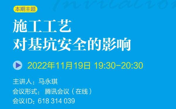 發布日期:2022-12-14 15:14巖土錨固學苑將于2022年11月19日(周六)19:30-20:30舉辦第6期,本期主題:施工工藝對基坑安全的影響,歡迎廣大巖土錨固領域愛好者參與交流...