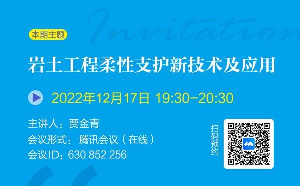 發布日期:2023-01-07 17:10巖土錨固學苑將于2022年12月17日(周六)19:30-20:30舉辦第8期,本期主題:巖土工程柔性支護新技術及應用,歡迎廣大巖土錨固領域愛好者參與交流。...