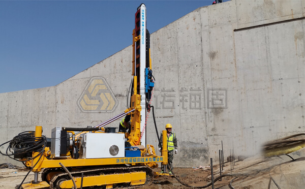 自鉆式錨桿施工技術是一種新型的錨固技術,該技術實現的關鍵是要有自鉆式錨桿施工設備,如鉆機。目前國內市場缺乏有效的自鉆式錨桿施工鉆機,針對此情況,恒諾投入大量人力財力,與業內廠家合作,經百余次應用現場調研及試驗,歷經一年時間研發出自鉆式錨桿專用鉆機,讓自鉆式錨桿施工效率更高。